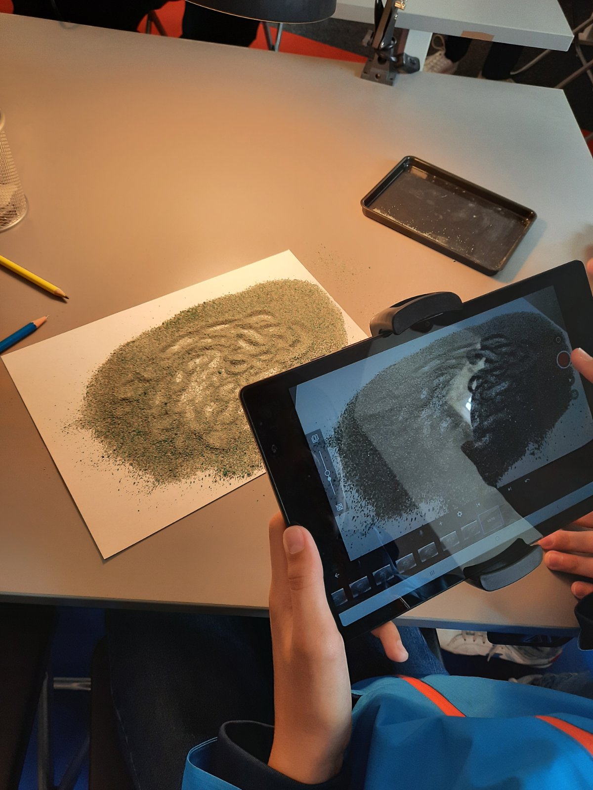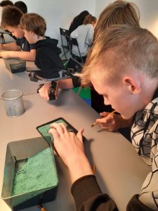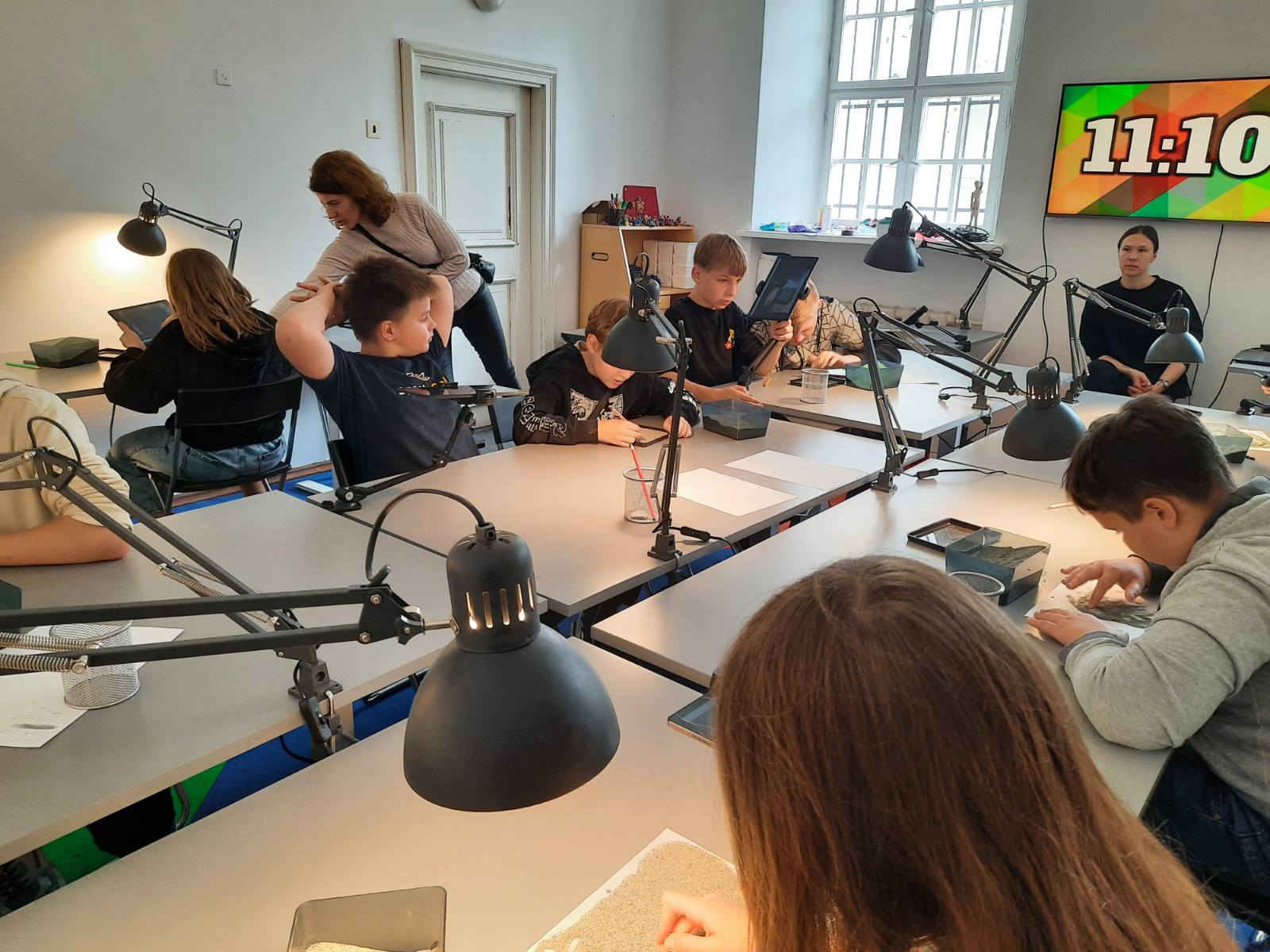 Užsiėmimo metu moksleiviai susipažino su animatorių profesija – turėjo galimybę pabandyti sukurti trumpą animacinį filmuką, naudodami smėlį ir animacijos kūrimo programėlę. Iš pradžių mokiniai išgirdo Mikalojaus Konstantino Čiurlionio – vieno žymiausių lietuvių menininkų, savo kūriniuose siekusio muzikos bei dailės sintezės, nepamirštamą simfoninę poemą „Jūra“. Beklausydami šio kūrinio, mokiniai susipažino su muzikinio pasakojimo bruožais, stebėjo ir aptarė kylančias vaizdines asociacijas, o pasitelkdami animacijos studijos teikiamas galimybes, muzikos įkvėptus įvaizdžius pabandė paversti savo sukurtų animacinių filmukų siužetu. Pasinėrę į vaizduotės pilną animacinio filmuko kūrimo jūrą, lydimi nuostabių klasikinės muzikos garsų, mokiniai net nepastebėjo, kaip greitai ir turiningai jiems prabėgo laikas.