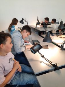 Birželio 2 d. mūsų mokykla dalyvavo projekte „Šok į tėvų klumpes“. Ta proga 5a, 5b ir 7a klasių mokiniai su savo auklėtojomis lankėsi Lietuvos teatro, muzikos ir kino muziejuje, animacijos studijoje, kur turėjo edukacinį užsiėmimą „Menų sintezė: muzika ir animacija“.