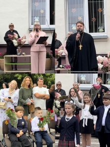 Mokslo metų pradžios šventė tradiciškai prasidėjo Lietuvos Respublikos himnu, po kurio visus susirinkusiuosius pasveikino mokyklos direktorė Jūratė Vienciuvienė bei Vilniaus Dievo Motinos Ėmimo į Dangų katedros šventikas Andrėjus. Jie linkėjo mokiniams smalsumo, atkaklumo bei sėkmės siekiant žinių, o mokytojams – kantrybės, kūrybiškumo ir įkvėpimo.