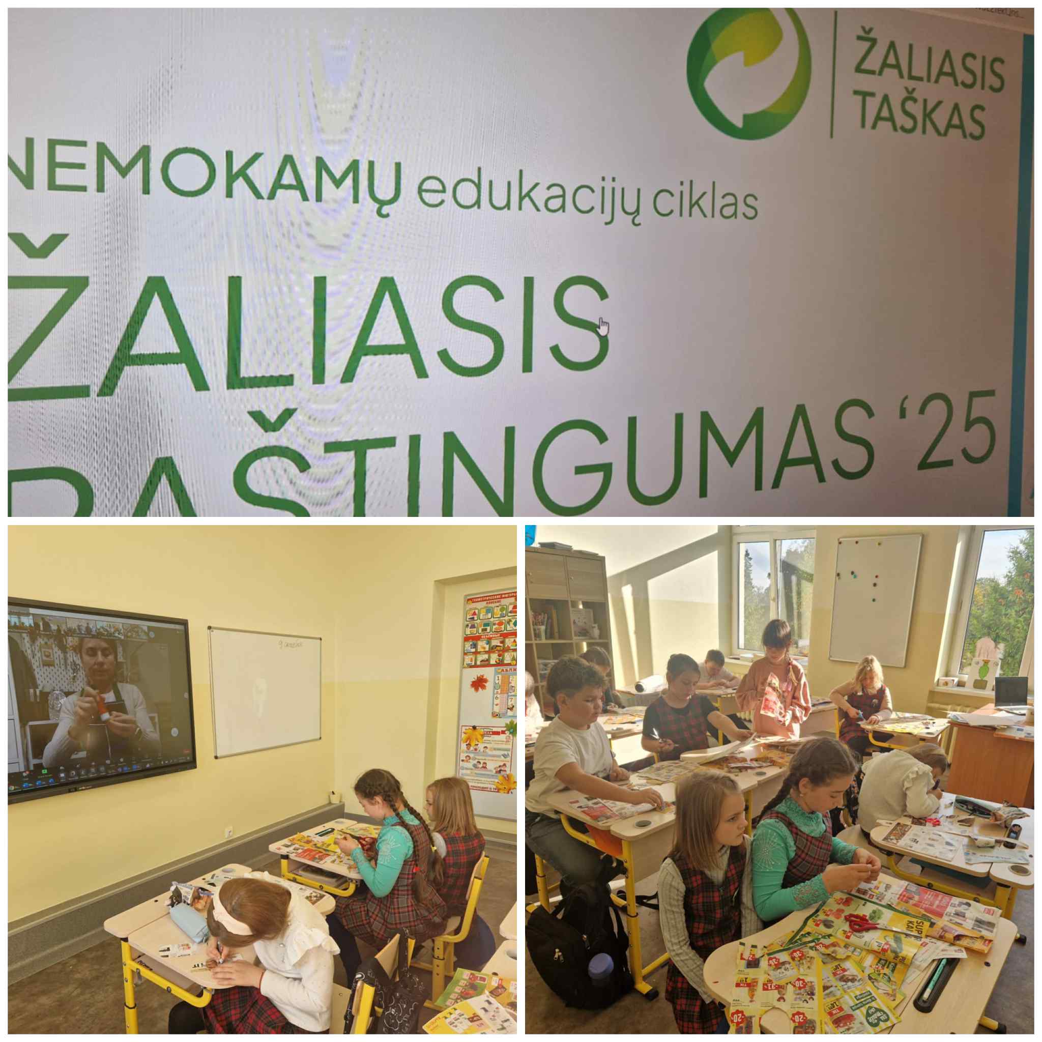 3 – 4 klasių mokiniai sėkmingai užbaigė edukacinį ciklą, skirtą išmaniam atliekų rūšiavimui. Projektas įrodė, kad ekologija ir kūrybiškumas puikiai dera kartu! Vaikai ne tik įsisavino rūšiavimo principus, bet ir sužinojo, kaip paruošti antrines žaliavas perdirbimui. Praktinė dalis tapo įdomiausia – senos, nereikalingos medžiagos virto meno kūriniais. Vietoj naujų priemonių, mokiniai naudojo tai, kas paprastai keliauja į šiukšliadėžę: seną popierių ir net tuščius kavos pakelius. Projekto kulminacija tapo bendras simbolis – meškiukas-paštininkas. Jo kūnas ir letenos buvo suformuotos iš sukaupto popieriaus ir kitų minkštųjų antrinių žaliavų. Svarbiausias akcentas – vokas. Meškiukas letenėlėse laikė žinutę, pagamintą iš spalvingų reklaminių žurnalų puslapių. Šio Meškiuko kūrimas buvo skirtas Pašto dienai paminėti. Vaikai sužinojo, kaip svarbu rūpintis ne tik informacijos perdavimu, bet ir gamta, naudojant medžiagas pakartotinai.