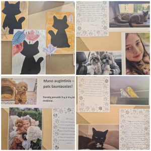 Trečios klasės mokiniai pasidalino savo nuoširdžiais darbais: jie parašė rašinėlius apie savo augintinius ir atnešė kačiukų, šuniukų, papūgų nuotraukas.