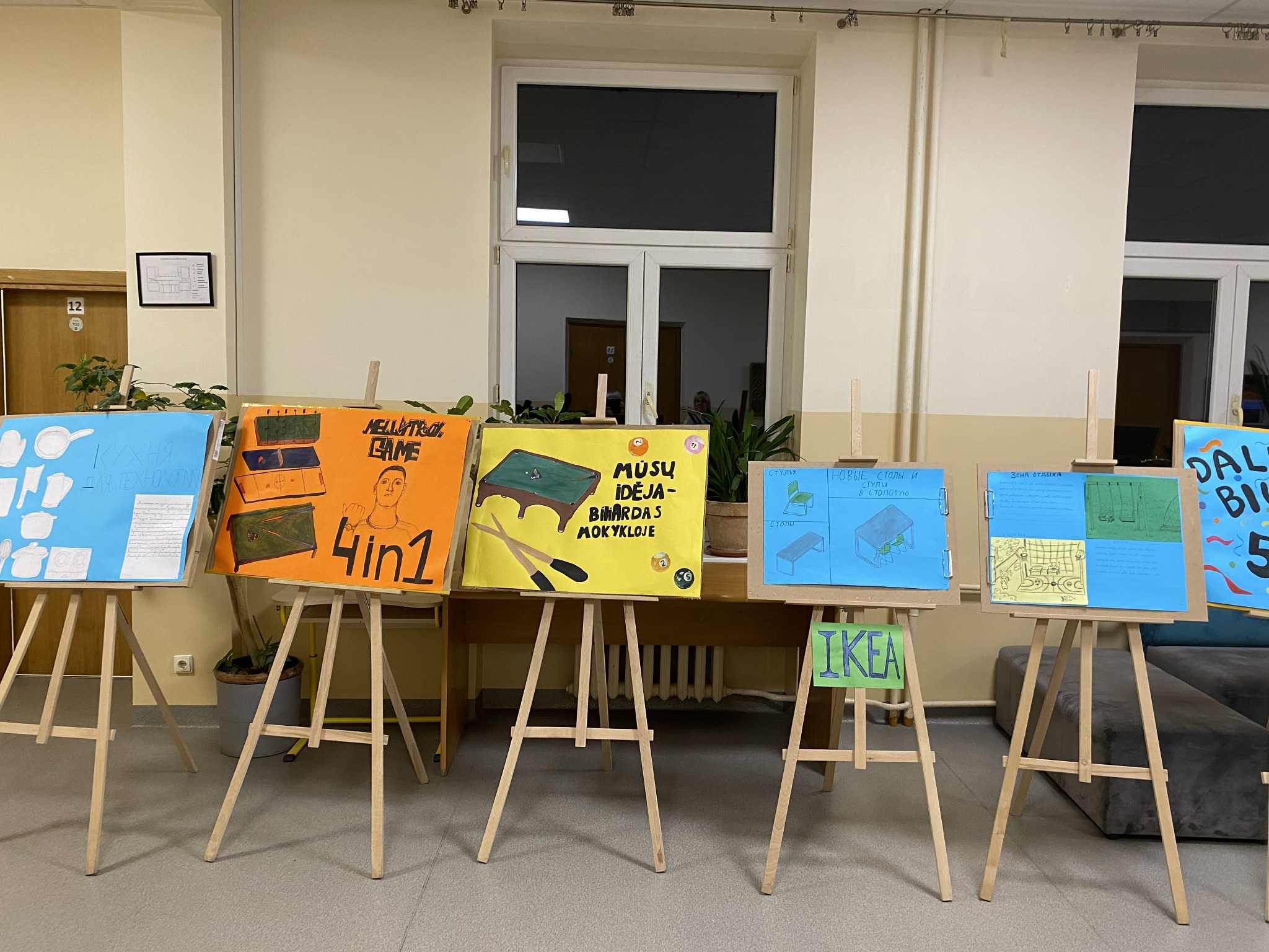 Konkursui buvo atrinktos 6 klasių idėjos: 5 kl. – „Šachmatų stalelis“, 7 kl. –„Daugiafunkcinis žaidimų stalas“, 8 kl. –„Virtuvė technologijų pamokoms“, 9 kl. –„Poilsio zona lauke“, 10 kl. –„Biliardo stalas“.