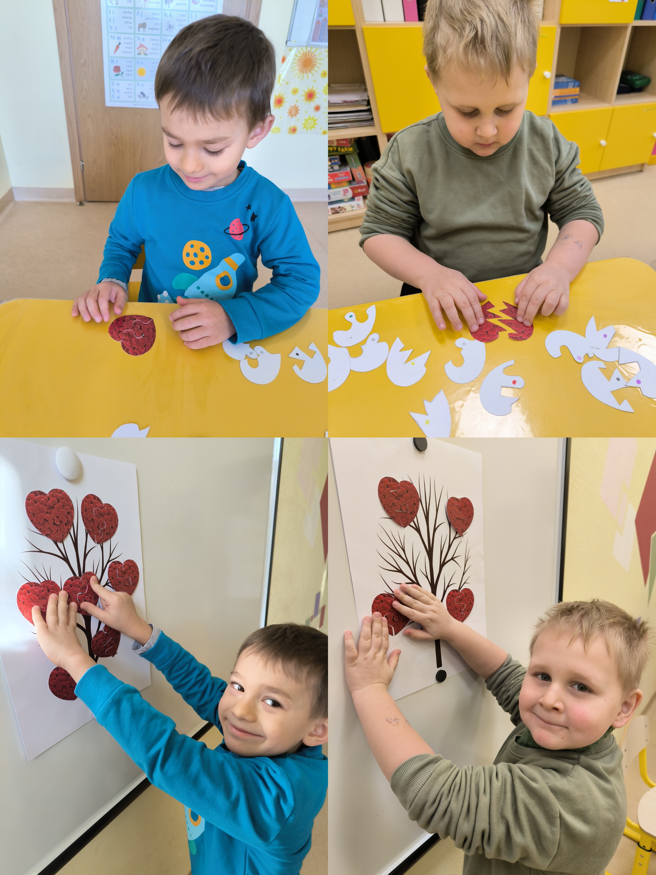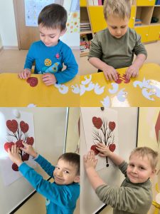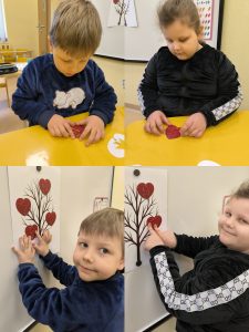Švęsdami šią dieną su vaikais kalbėjomės apie meilę tėveliams, broliams ir seserims. Kai jaučiame meilę, mūsų širdelės plaka stipriau. Tai graži šventė, kurios simbolis – širdelė. Mokėmės apkabinti, pasakyti gražius ir malonius žodžius. Kartu užauginome širdelių medį. Žaidėme žaidimą ,,Rask savo puselę‘‘. Vaikai su džiaugsmu ieškojo kiekvienai širdelei tinkamos puselės ir radę ją tvirtino prie meilės medžio. Paskui spalvino širdeles, žaidė kitus žaidimus. Vaikams buvo įdomu ir linksma. Jie džiaugėsi, patyrė daug gerų emocijų.