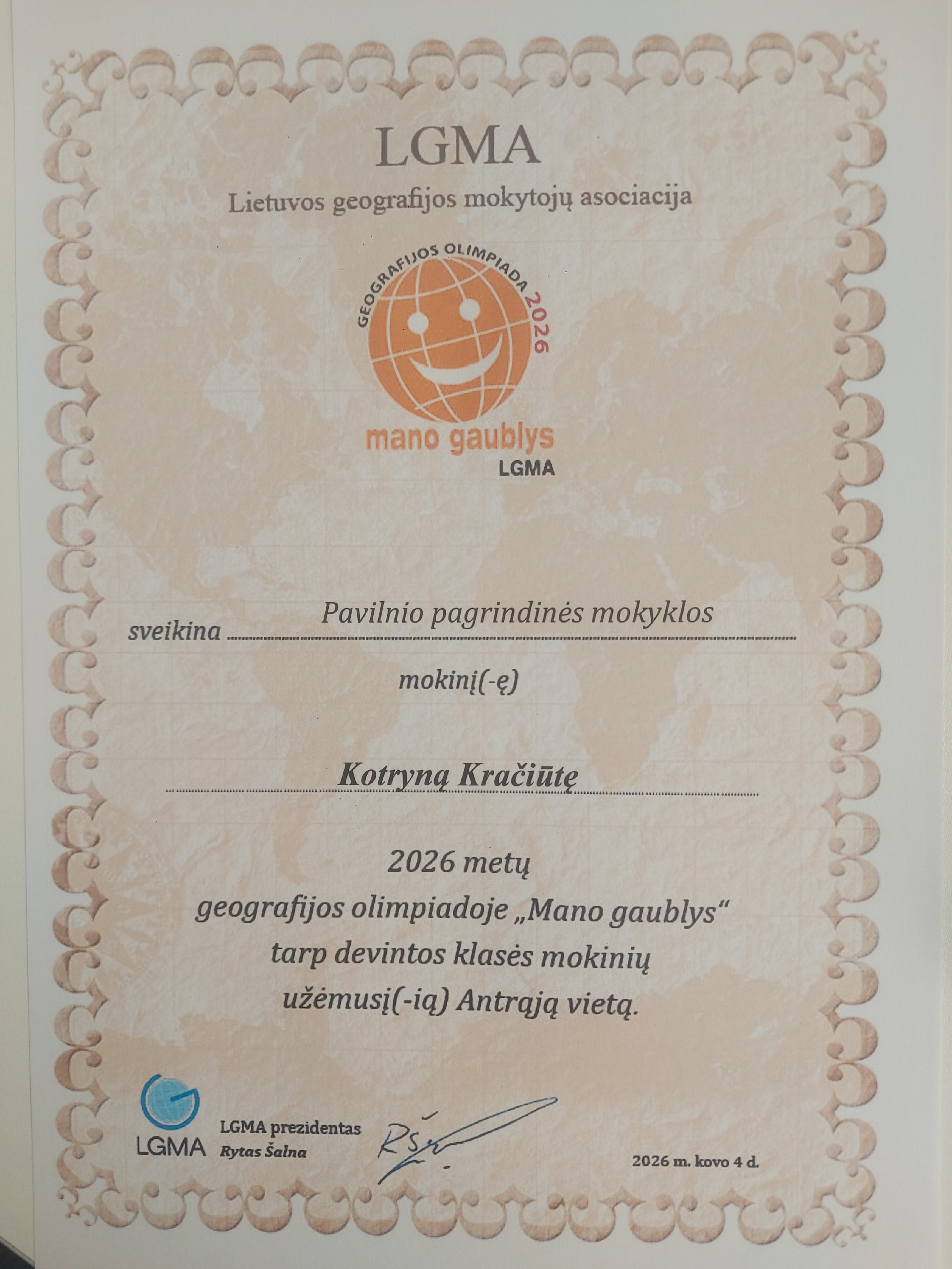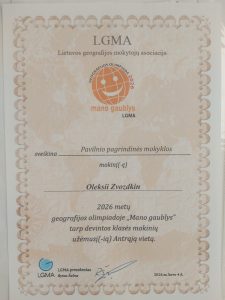 Kovo 2 dieną mokykloje vyko geografijos olimpiada ,,Mano gaublys 2026″.
