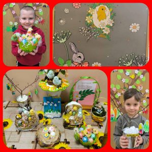 Artėjant Velykoms priešmokyklinės grupės ,,Žiniukai‘‘ vaikai surengė spalvingą kūrybinių darbų parodą, kurioje atsiskleidė vaikų bei tėvų bendradarbiavimas. Kartu su šeimomis vaikai kūrė įvairius velykinius darbelius: margučius, mielas vištytes, žaliuojančią žolę ir kitus velykinius simbolius. Vaikai savo darbelius rodė draugams, pasakojo, kaip kūrė kartu su tėvais. Paroda ne tik džiugino akį, bet ir ugdė bendruomeniškumą, kūrybiškumą.