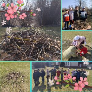 Persikėlę į mokyklos sodą, mokiniai tapo tikrais kūrėjais. Per technologijų pamoką klasė pasidalino į komandas ir gavo užduotį: naudojant tik tai, ką dovanoja pavasarinis sodas, sukurti instaliaciją gamtos tema.