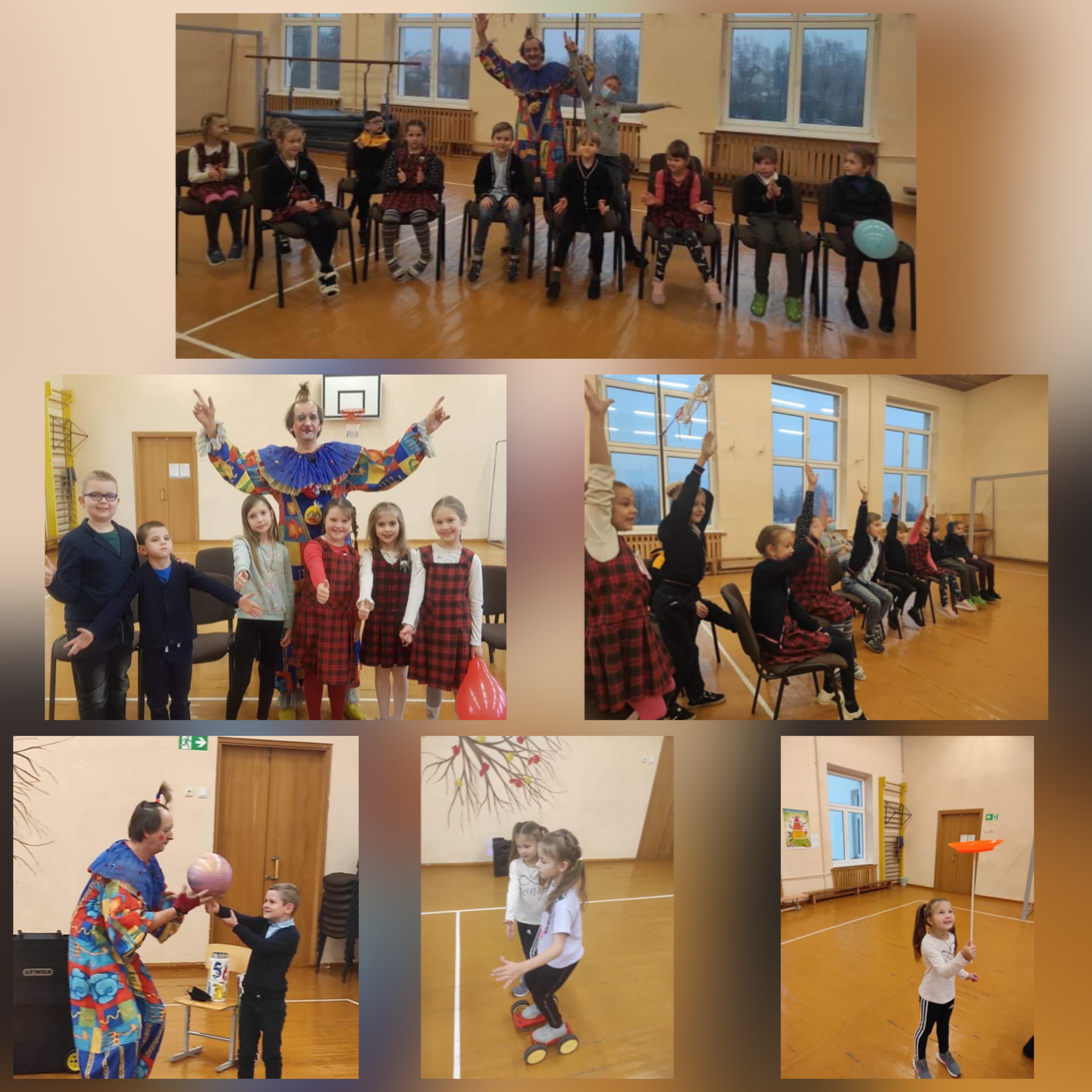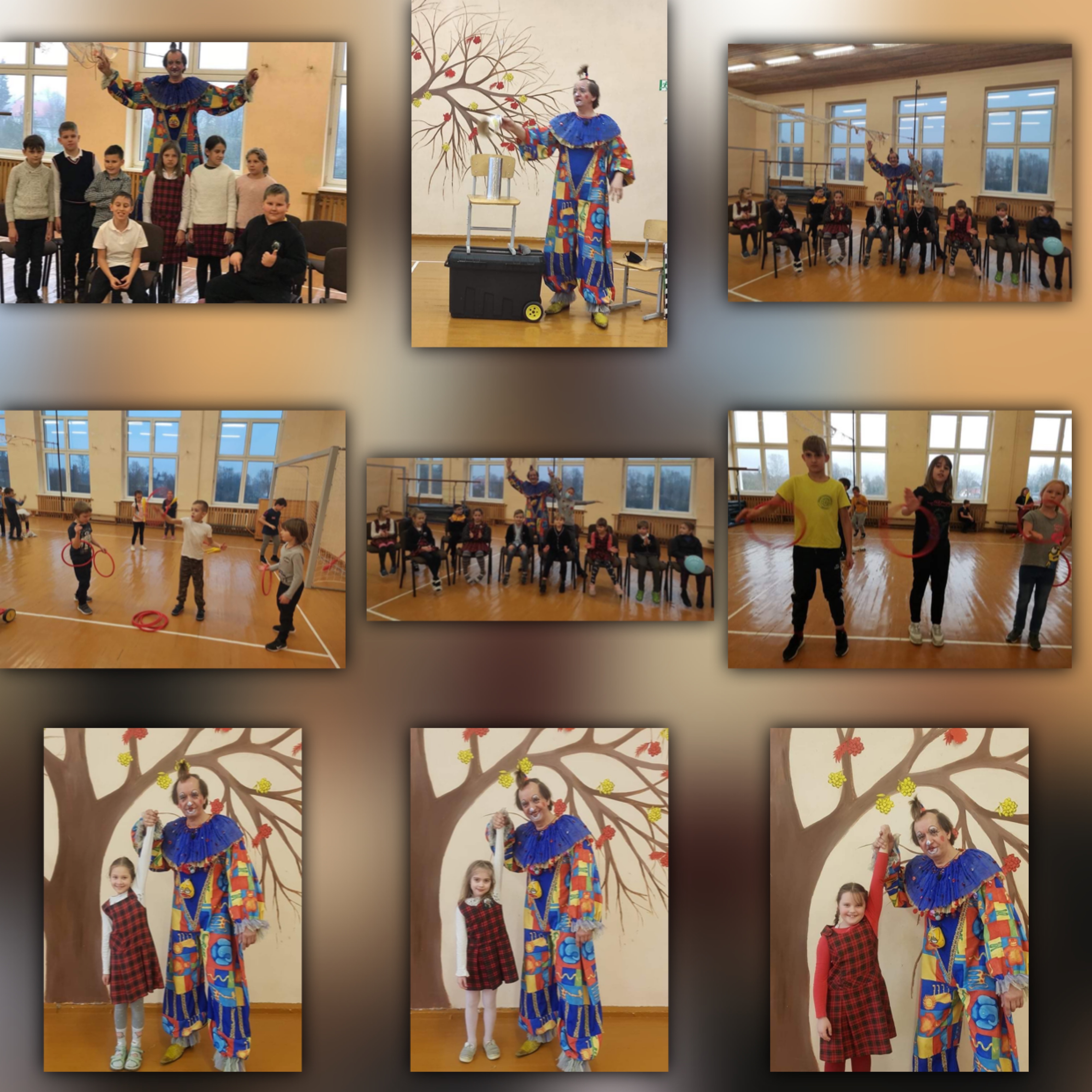 Kas patinka vaikams ypač mažiesiems? Saldainiai, cukrinė vata, fokusai, pokštai ir žinoma – cirkas. O kas cirke svarbiausias – turbūt klounas. Toks linksmas, mielas ir nuostabus klounas aplankė mūsų pradinukus. Vaikai buvo neapsakomai nustebinti įmantriais artisto triukais, negailėjo plojimų. Pradinių klasių mokiniai kartu su klounu pagal nuotaikingą muziką leidosi į cirko šalį. Vaikai mielai tapo spektaklio dalyviais, patys atliko įvairius triukus.