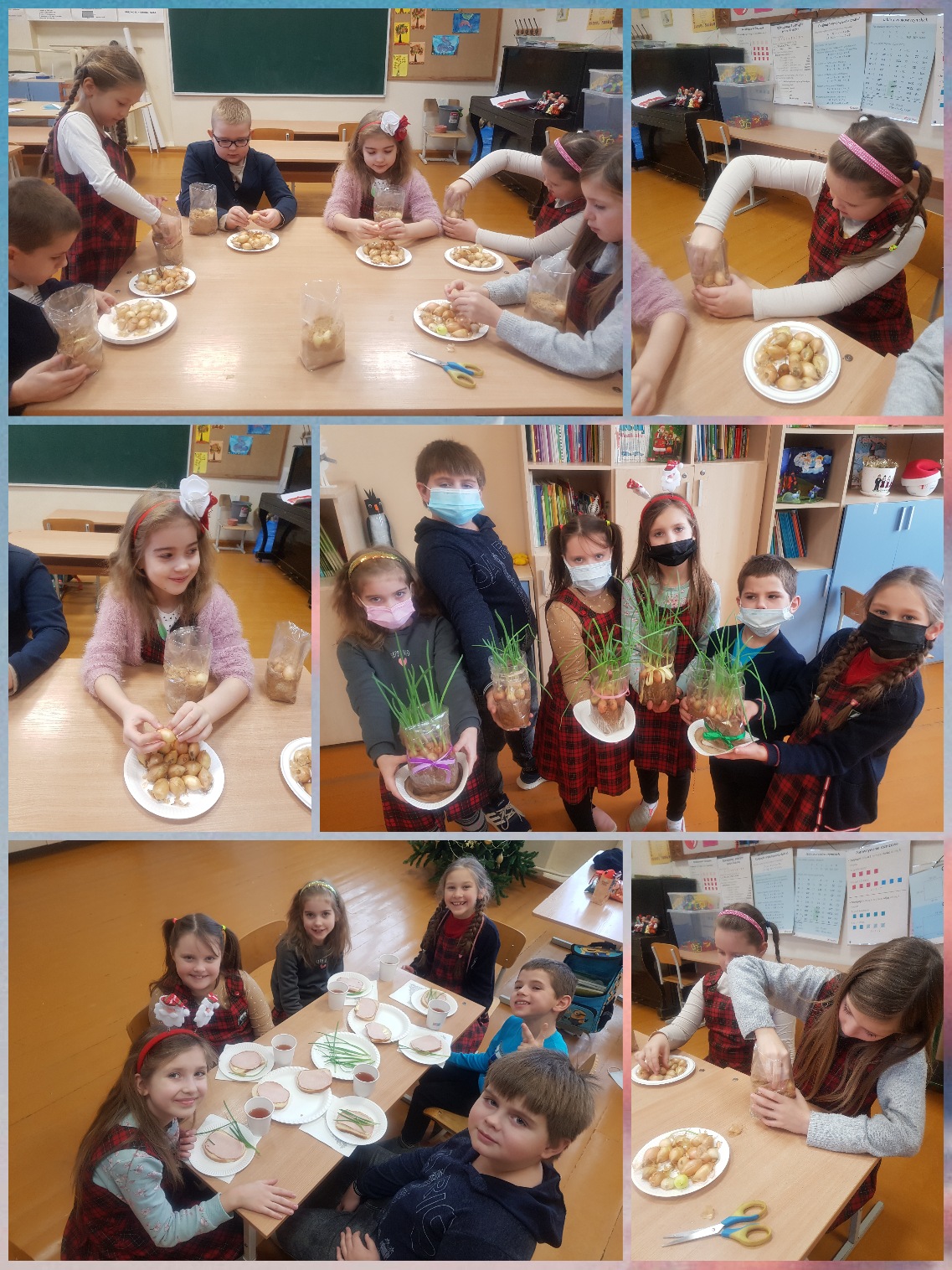Ant palangės pavasarį galima užsiauginti daugybę prieskoninių augalų. Taip ir padarė 2a ir 4a klasių mokiniai, tik ne pavasarį, o žiemą, klasėje ant palangės užsiauginę svogūnų laiškus. Lapkričio pabaigoje vaikai patys pasodino svogūnus, laistė juos, mokėsi tinkamai prižiūrėti. Mokiniams tai pavyko ir jau gruodžio pradžioje skanavo svogūnų laiškus su gardžiais sumuštinukais. Mokiniai puikiai žino, kad daržoves valgyti labai sveika ir naudinga!