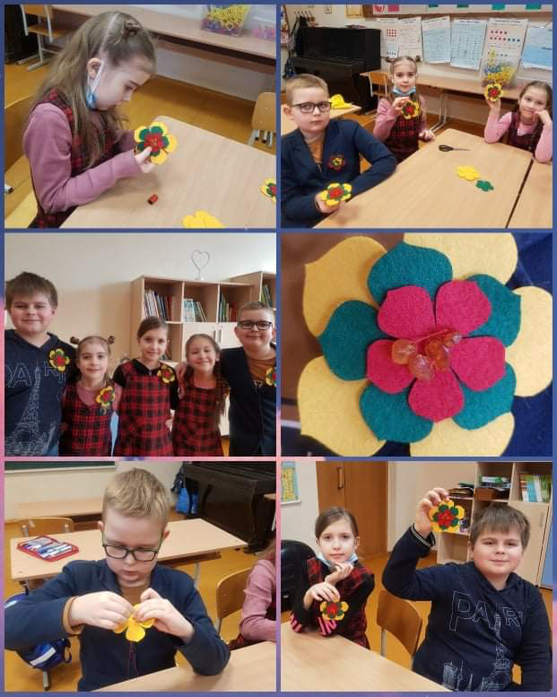 Belaukdami šventės 2a ir 4a klasių mokiniai iš dirbtinės vilnos pasigamino trispalvę tautinę sagę, papuoštą Lietuvos ,,auksu” – gintaru.