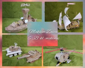Tai jau antra Maksimo Zaicevo iš 6 B klasės darbų mokyklinė paroda. Ji paįvairino mūsų mokyklos erdves vasario mėnesį. Mokinys jau senai stebina savo kūrybiniais darbais. Maksimas nuolat konstruoja įvairias konstrukcijas su ypač smulkiomis detalėmis. Prieš pradėdamas gaminti gaminį, mokinys išanalizuoja prototipus bei maketus. Šios parodos autorius yra kūrybingas, kruopštus ir labai talentingas. Visi jo darbai yra puikūs ir autentiški.