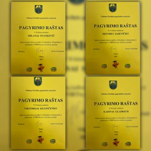Įvertinus moksleivių triūsą paaiškėjo ir olimpiados nugalėtojai savo amžiaus grupėse. Jais tapo 5 b kl. mokinė Milana Stankevič, 6 b kl. mokinė Viktorija Kulinčenko, 9 a kl. mokinys Deividas Jasevičius ir 10 b kl. mokinė Karina Gladkich. Olimpiados nugalėtojai buvo apdovanoti pagyrimo raštais, o visi kiti dalyviai gavo padėkos raštus.