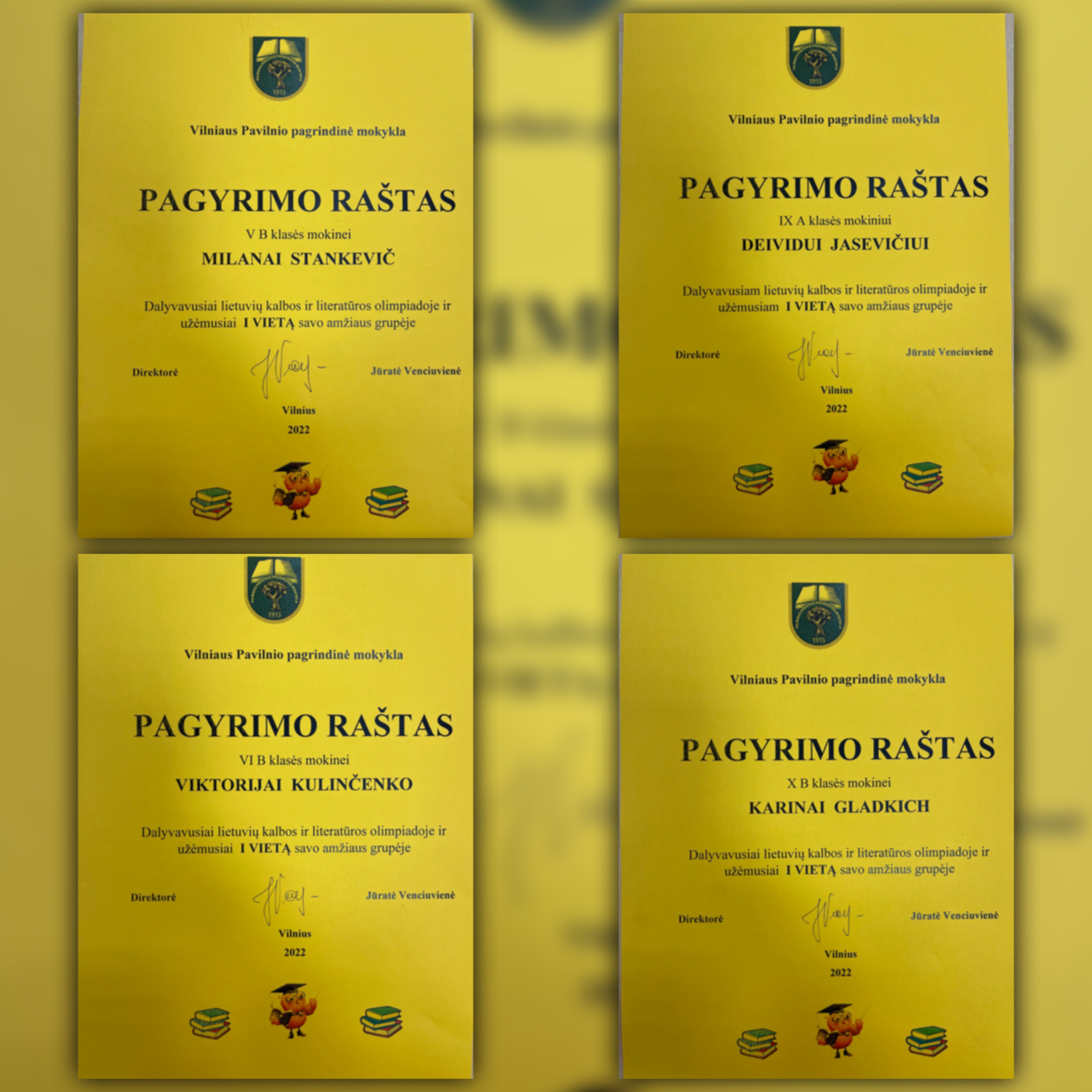 Džiugu, kad yra nemažai mokinių, kurie siekia kuo geriau išmokti lietuvių kalbą, pajusti jos grožį, mokytis taisyklingai ir raiškiai reikšti savo mintis ne tik žodžiu, bet ir raštu, tobulina kalbos vartojimo gebėjimus, lavina kūrybiškumą ir saviraišką bei aktyviai įsitraukia į Lietuvos kultūrą.