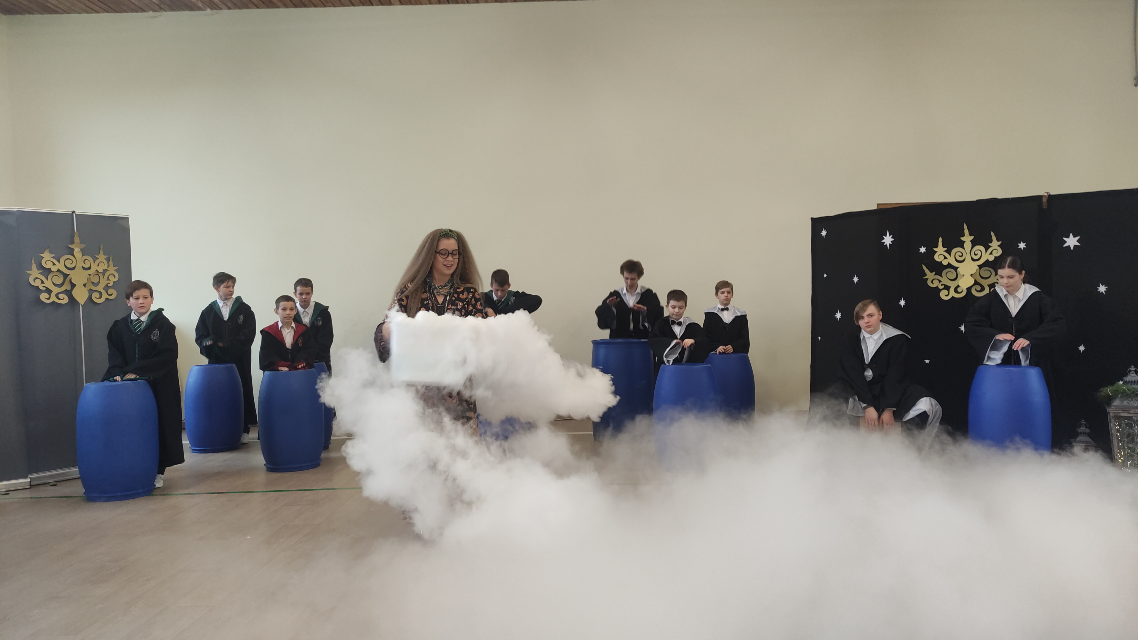 Sausio 12 dieną Art laboratorija „DramŠok“ pristatė naujametinį muzikinį spektaklį „Stebuklingų puslapių beieškant“ mūsų mokykloje. Muzikos spektaklis pagal Hario Poterio bene garsiausią istorijoje burtininko personažą sugrįžo, tačiau ne į televizijos ekranus, o į mūsų mokyklos sceną.