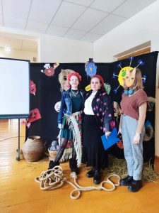 Po linksmo vaidinimo padainavome kartu Užgavėnių liaudies dainų, kurias paruošė muzikos vyr. mokytoja J. Šliachtovič.